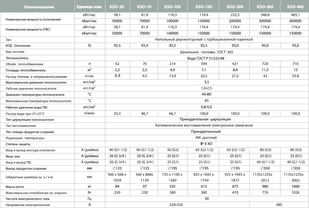 Технические характеристики напольного двухконтурного дизельного котла Kiturami KSO 300R OIL