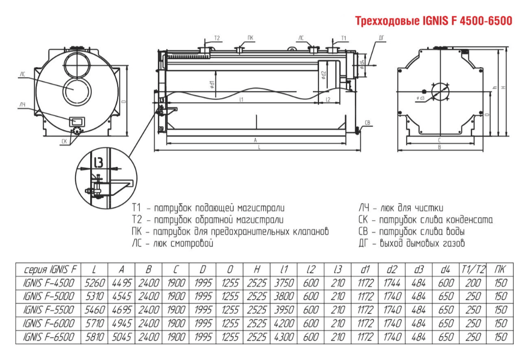 Технические характеристики водогрейного трёхходового котла ARCUS IGNIS F-6500